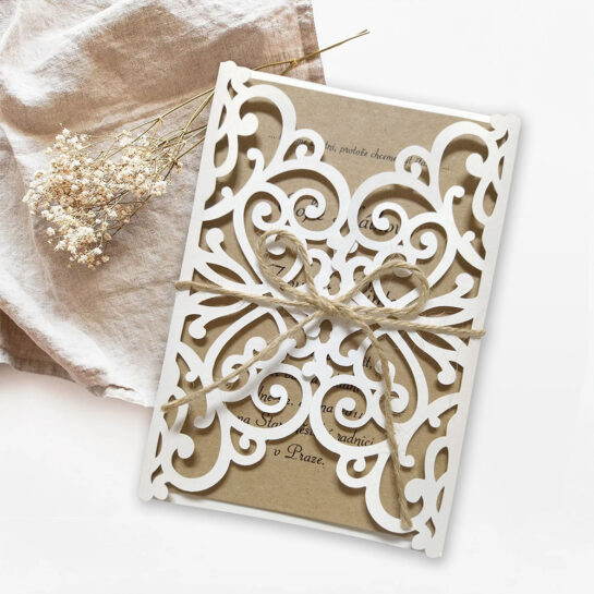 Pokud máte menší uzavřený obřad a větší večerní oslavu, můžete mít dvoje oznámení – formální vyřezávaná pozvánka k obřadu pro nejbližší a jednodušší oznámení pro širší okruh hostů. Vyřezávaná pozvánka na svatbu může být ještě více detailní a luxusní.